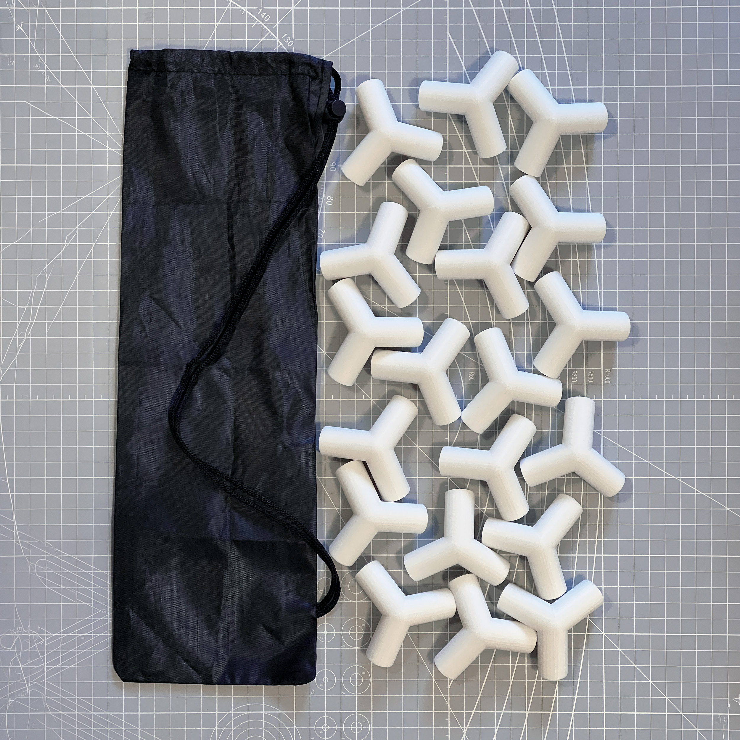 Los vértices están construidos con PLA, se trata de un bioplástico biodegradable. Es un termoplástico cuyos materiales de base se obtienen a partir de almidón de maíz o de yuca o mandioca, o de caña de azúcar.